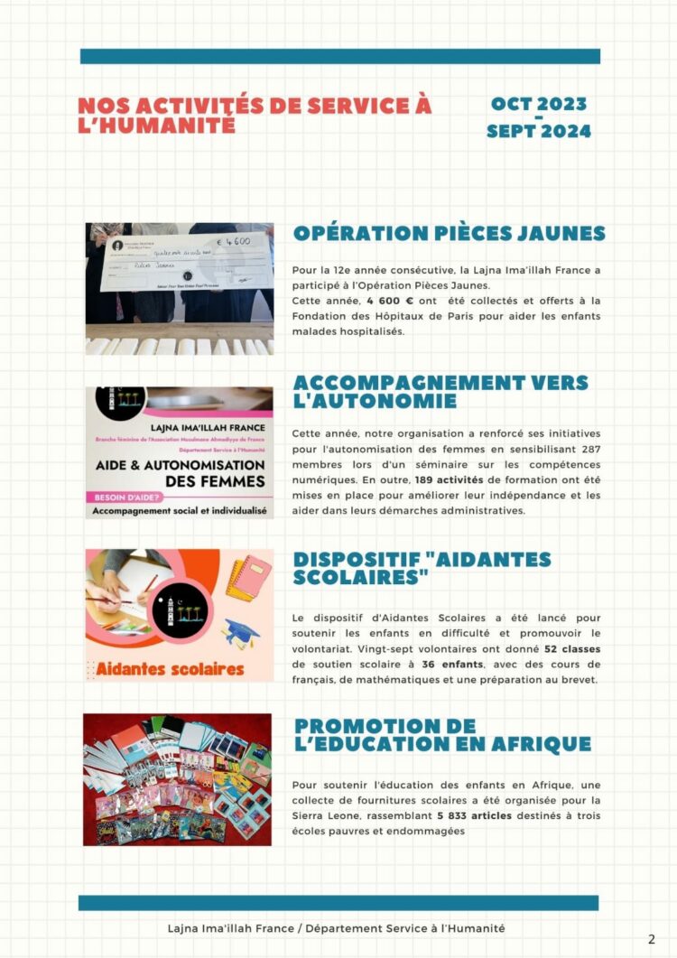 Toutes ces actions s’inscrivent dans la vision islamique du service à l’humanité, qui nous guide à œuvrer pour le bien-être de tous, sans exception.