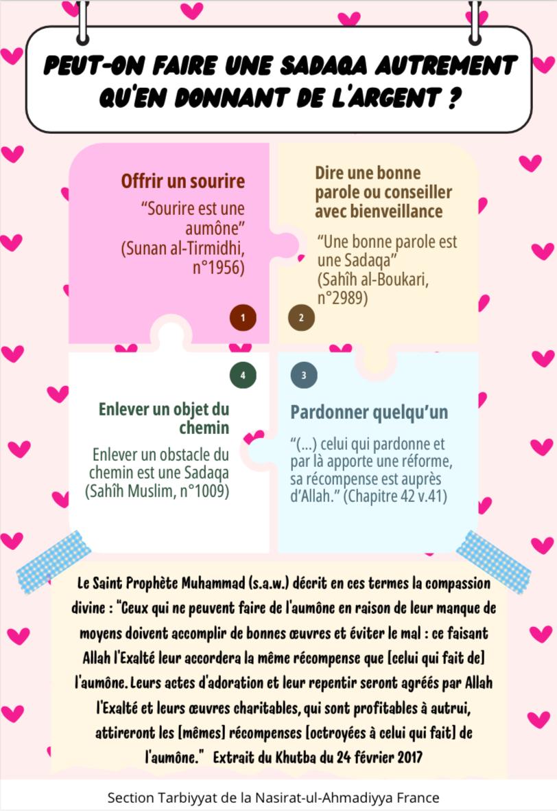 Cette section a pour objectif d’accompagner les Nasirats dans leur éducation morale, spirituelle et sociale en développant des programmes de sensibilisation aux sujets islamiques et en leur donnant des outils pour affronter les défis de notre époque avec confiance et foi en l’Islam Ahmadiyya.